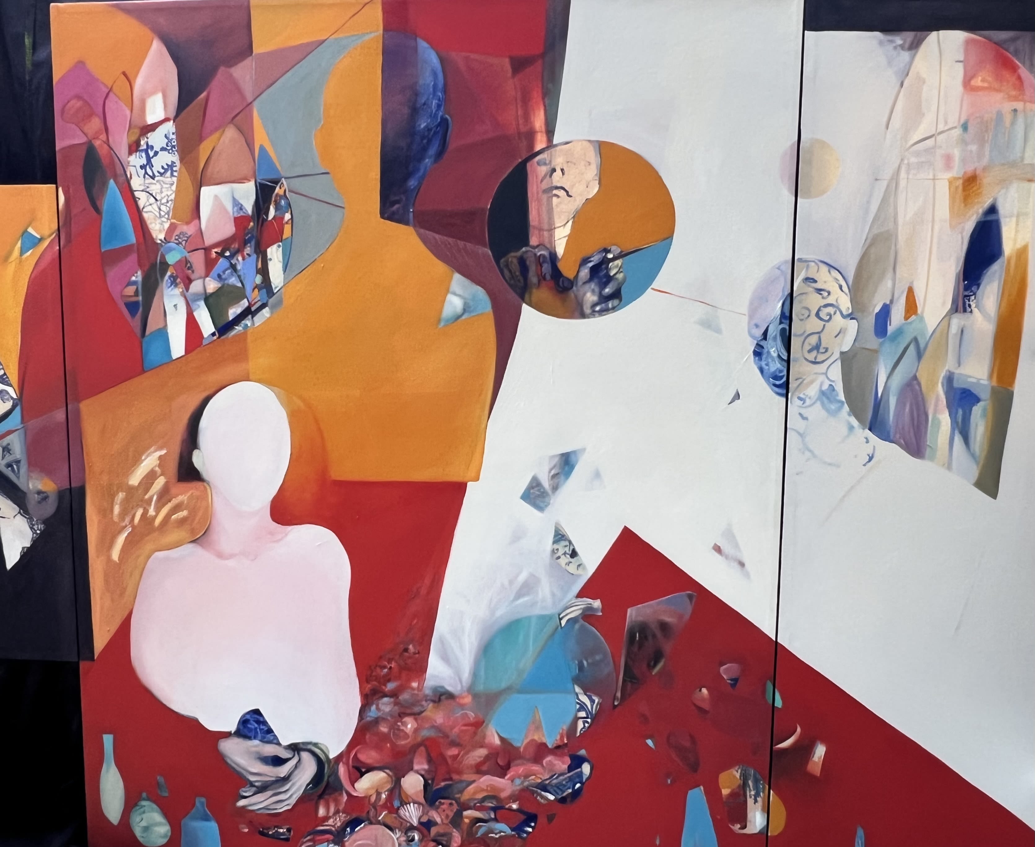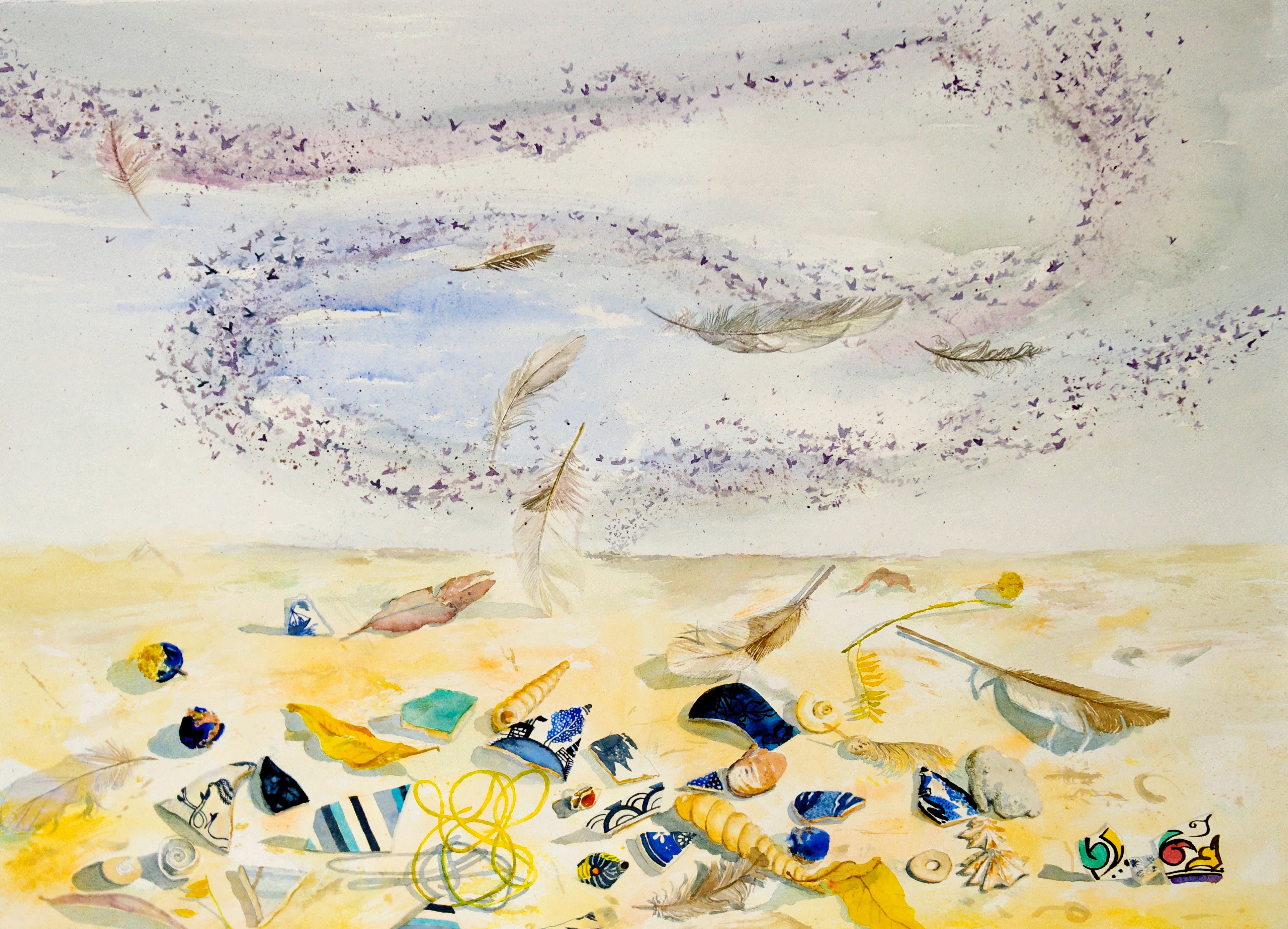 Figures piled together in vessels journeying, birds captive and free, abstract structures that are somehow both foreign confinements and makeshift shelters, wild swirling spaces of sky, ocean, and fields, upheaving events of war, fire, flood, and storm – Long intersects inner and outer worlds charting a course to no-place. Wholeness and belonging remain elusive, there is no permanence, and the works push on to far horizons.
